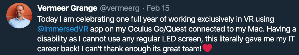 People all around the world have turned to Immersed in order to work effectively with their co-workers in VR, since chat and video conferencing just isn’t the same as working together in-person.
